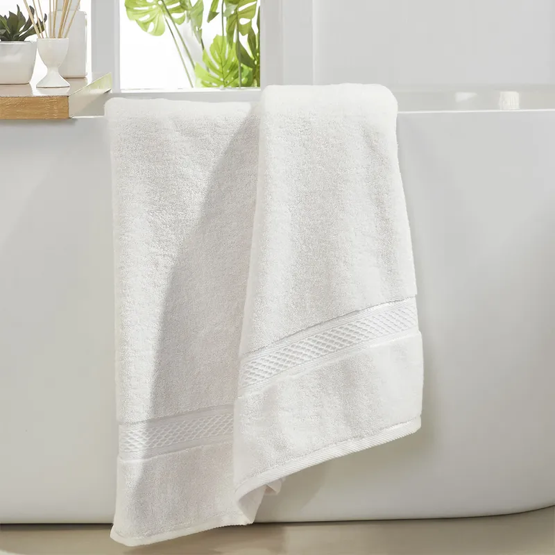 Revel in the joy of a pampering touch with this set of 2 hand towel from the Indulgence collection by Trident. This towel is made from cotton fabric with a thread count of 600. Developed using the new design, the towel with a tufted pattern is super absorbent, soft and highly durable. The longer loops create fluffiness and give an airy feel. It will perfectly complement your bathroom interiors.