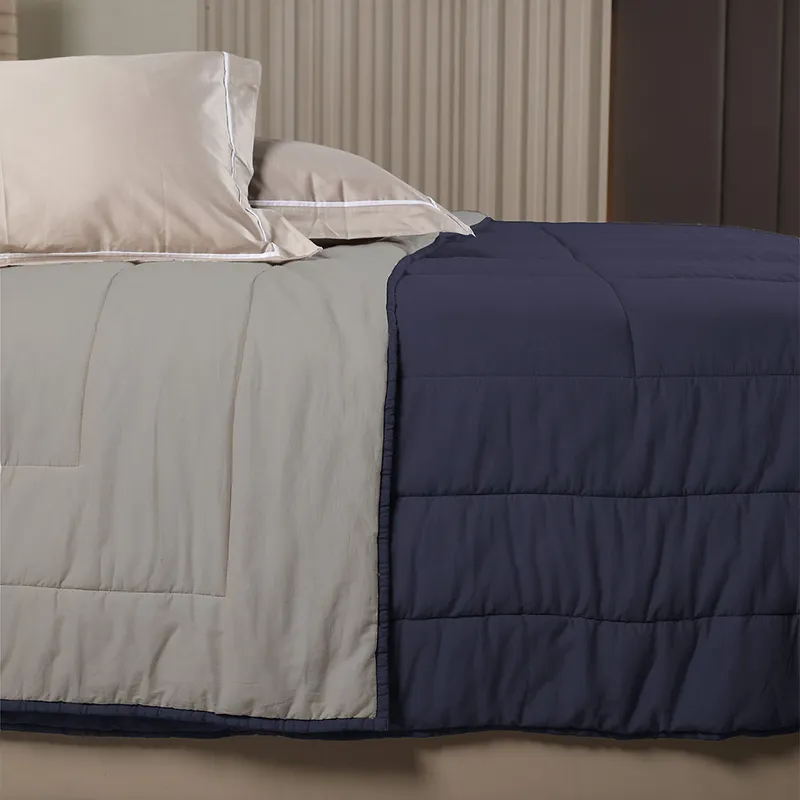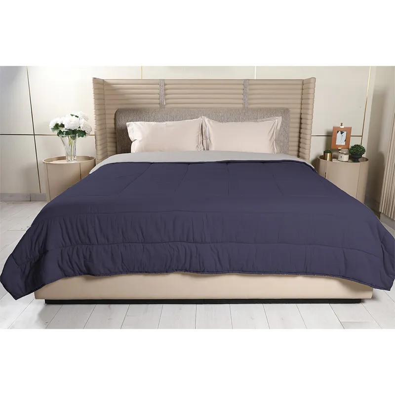 Experience ultimate comfort and style with the Lattice All Season Reversible Comforter. Made with 100% cotton, this versatile comforter showcases a stunning lattice pattern in two contrasting colors on each side, giving you the freedom to switch between two elegant looks. Its lightweight design and 150 GSM filling of micro-fiber offer the perfect balance of warmth and breathability, making it suitable for all seasons. With its soft and durable construction, this comforter is sure to provide you with a cozy and restful sleep experience. Elevate your bedding ensemble with the Lattice All Season Reversible Comforter today.