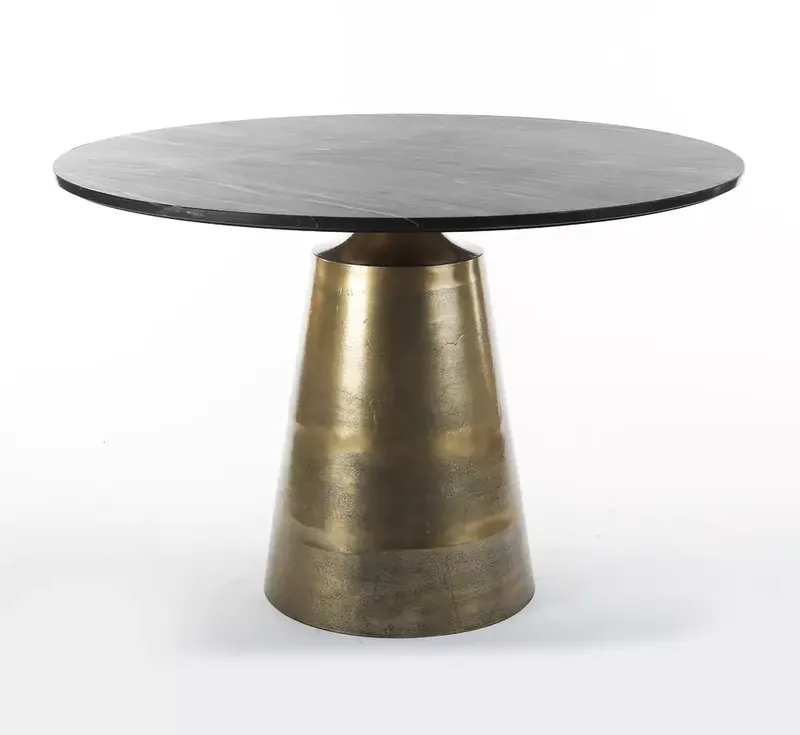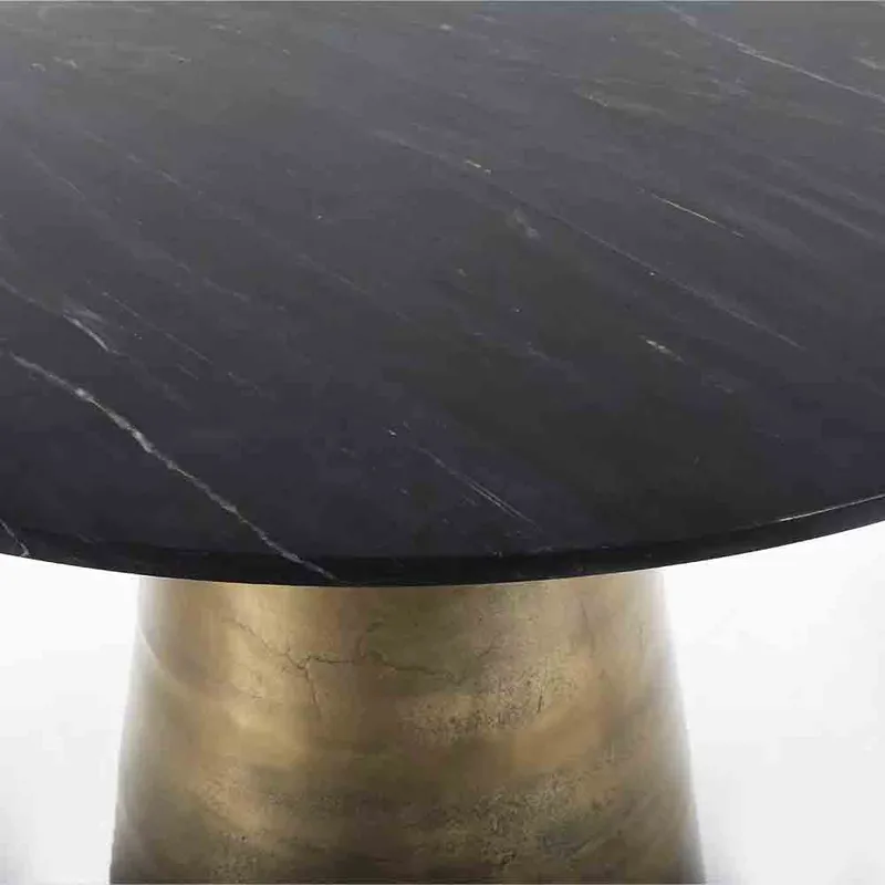 This stunning foyer table is sure to make a statement in any home. The antique brass base and black marble top create a visual texture that is both eye-catching and sophisticated. The table measures 120x120x59cm, making it the perfect size for any space. Table would be a great addition to any home décor.